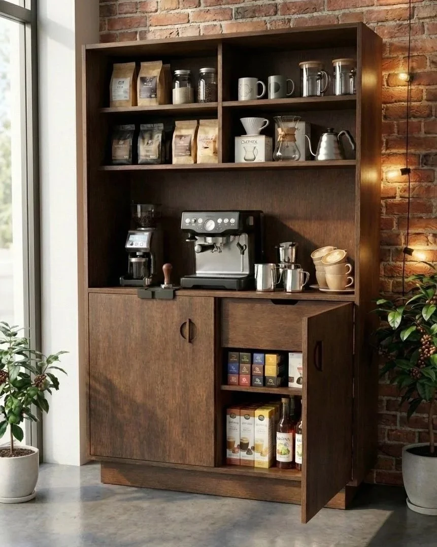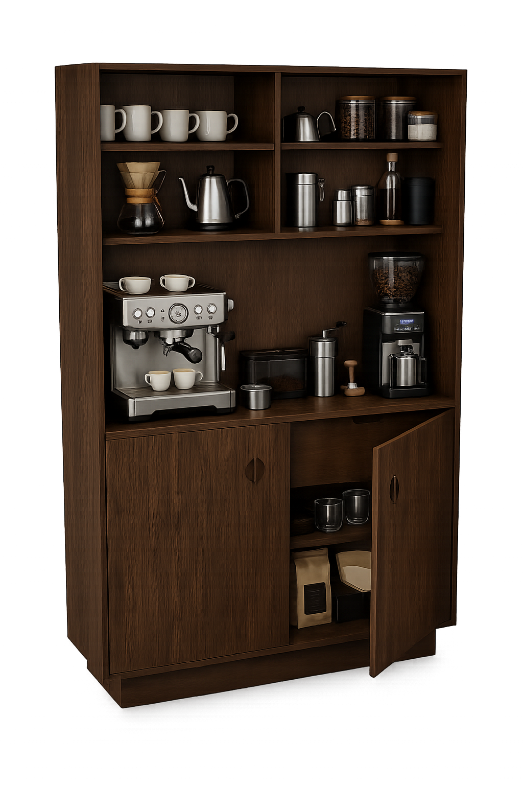 The result is a cabinet that brings order to obsession, structure to passion, and a little calm back into the kitchen — without asking the coffee lover to compromise.