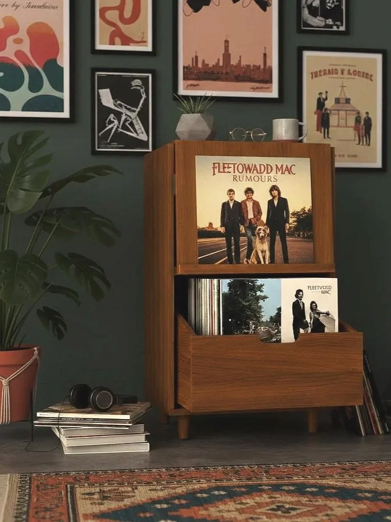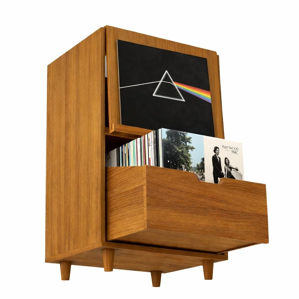 At the top of the cabinet is a removable wooden panel designed specifically to display the record currently being played. This feature turns the album cover into a visual focal point, celebrating not only the sound but also the artwork that is an essential part of the vinyl experience.